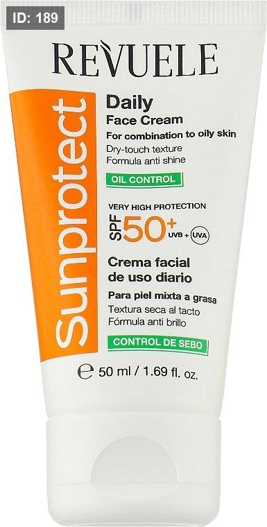 الميزات الرئيسية لكريم الوجه اليومي للتحكم في الزيوت من Revuele Sunprotect للبشرة المختلطة إلى الدهنية SPF 50+: