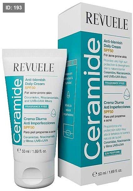 الميزات الرئيسية لكريم الوجه اليومي المضاد للبقع من Revuele Ceramide للبشرة المعرضة لحب الشباب "كريم النهار المضاد للتصبغ":